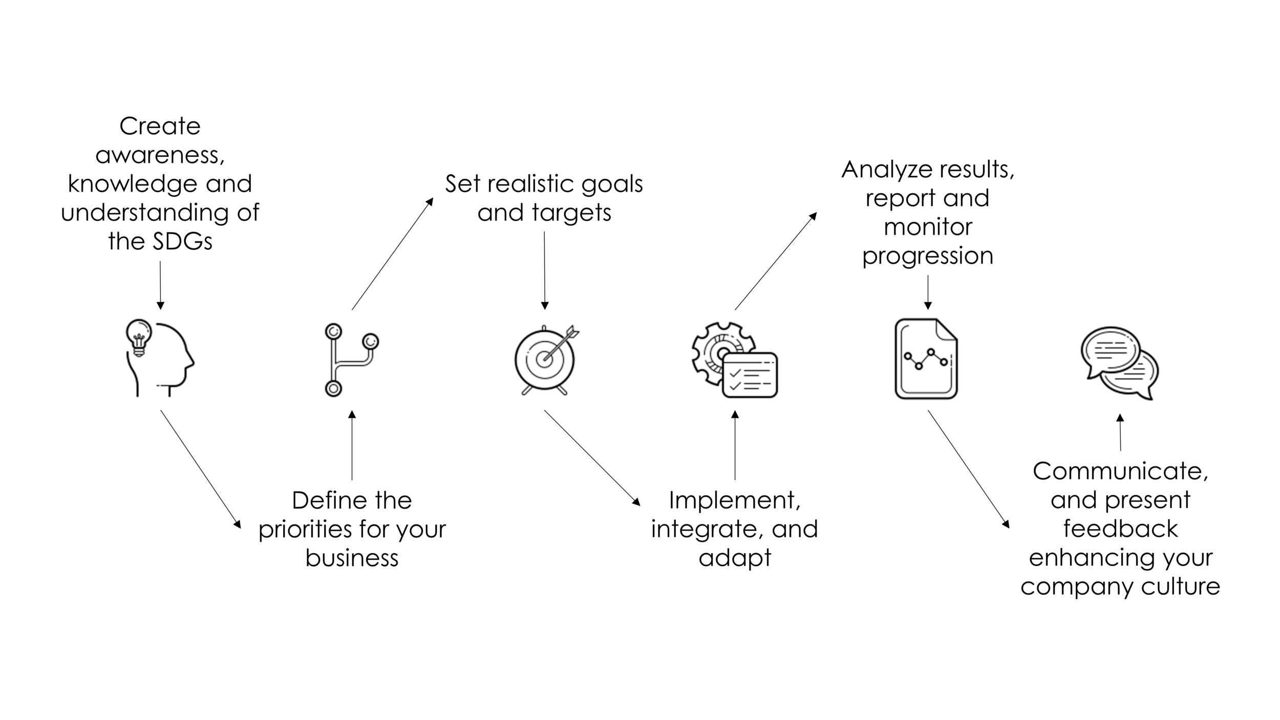 Thankfully help is at hand. At Hudson we can engage with your organization and assess your business model, your infrastructure, and your existing impact with the Sustainable Development Goals. Following this we can provide, recommendation, guidance and implementation strategies which are the most cost effective, depending on the size and scale of your business or organization. Companies can follow our six actions to optimize their contribution to the SDGs. Depending on their position, they can ensure that sustainability is a result of their core business strategy, and companies can use the six steps to define or re-align their course.
